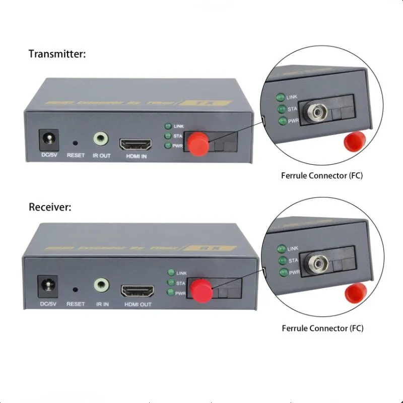 .image of HDMI Fiber Optic Transmission With HDMI IR Extender By Fiber RX/TX Video Audio Converter Over SC/FC