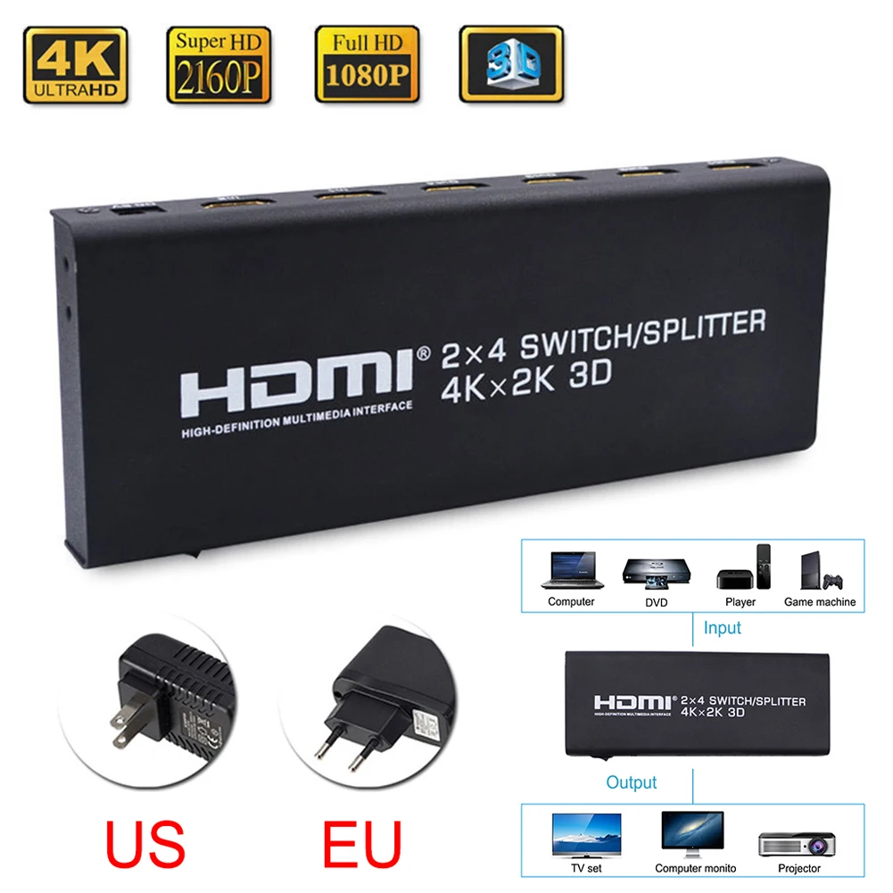 Related Product for HDMI Switch Splitter 2x4 4K HDMI 2 in 4 out 2.0 Audio Extractor Converter Adapter Remote Control 3D
