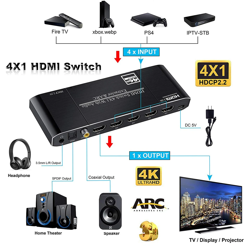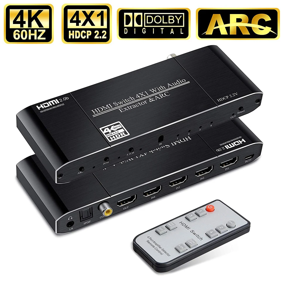 Related Product for 2020 Best 4K HDMI 2.0 Switch with ARC & IR 4x1 HDMI Switch Remote 4K 60Hz 2x1 HDMI Switch Audio Ext