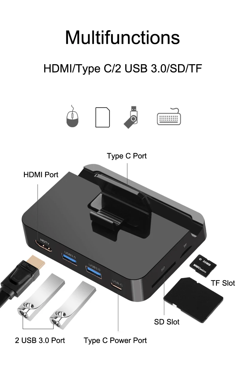 Related Product for Type C TO HDMI HDTV USB 3.0 OTG SD TF Card Reader Dock Charger Holder For Huawei P20 P30 Pro LG G5