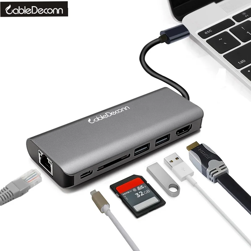 Related Product for USB-C Type C Thunderbolt 3 to HDMI 4K Gigabit Ethnernet RJ45 USB3.0 Hub SD Slot USB-C PD Dock Cable