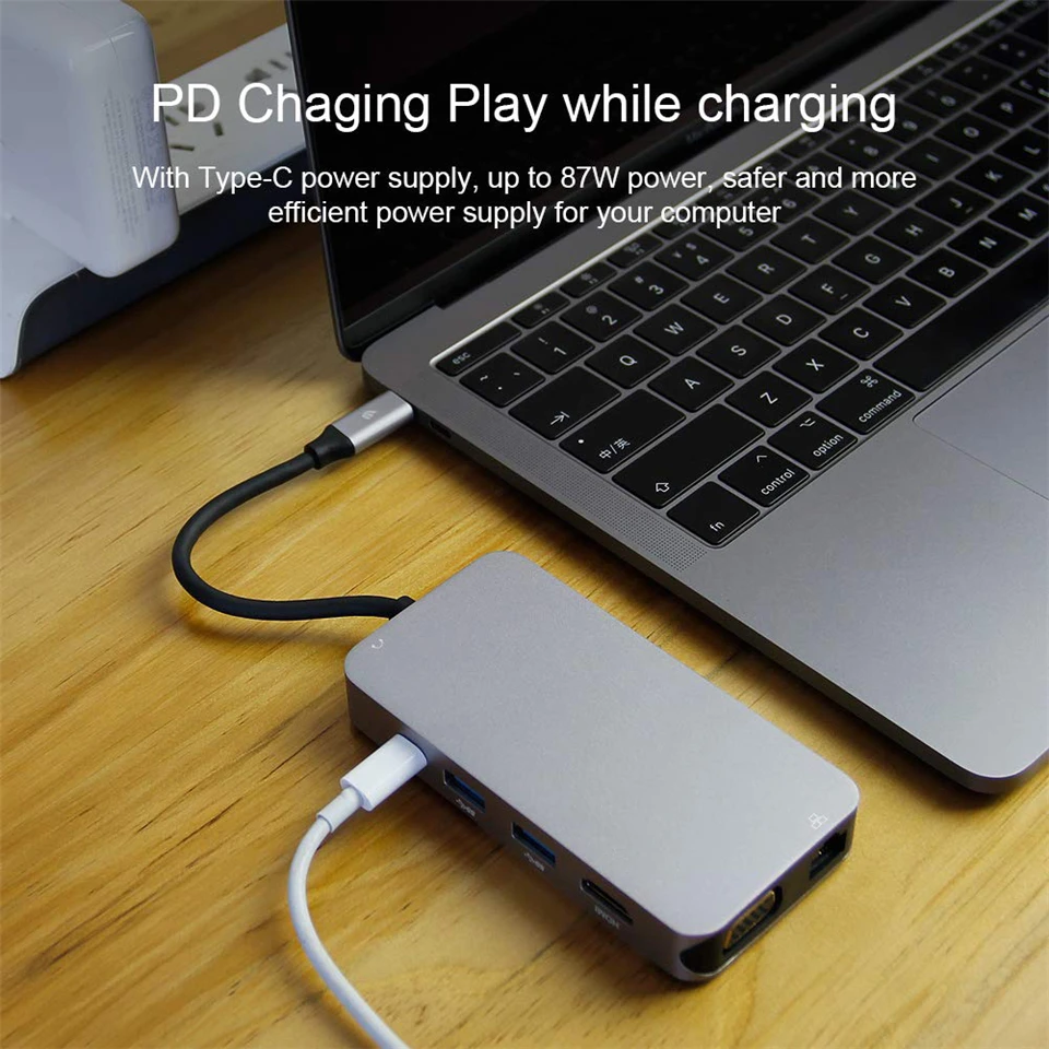 Buy 2020 USB HUB 10 in 1 Thunderbolt 3 Type C Adapter Dock 3 USB 3.0 Port 4K HDMI 1080P VGA RJ45 Gigabi Right Here and Right Now Just for USD US $50.00, Price will be rise up at any time without notification and I cant guaranted that the stock is still available tommorow or next hour. So Please Save It Now!
